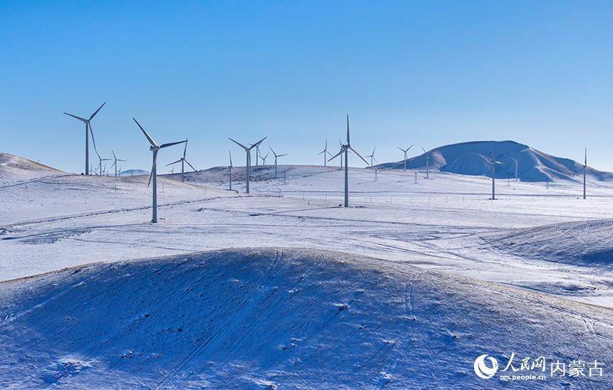 位于锡林浩特市的灰腾梁风力发电场景色。王正摄