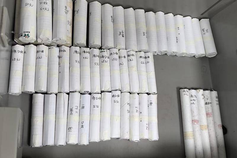此次杨女士带来的零散硬币面额混杂、数量庞大,清点难度远超常规柜面业务。为保障客户权益、提升清点效率,支行工作人员迅速分工、紧密协作,严格按照“人工分拣 + 逐枚点数 + 交叉复核”的精细化流程开展工作:先将杂乱的硬币按1元、5角、1角面额逐一分拣归类,再对各面额硬币逐枚仔细清点并捆扎成标准币卷,最后由双人交叉复核金额、确认账实相符后封装入库。