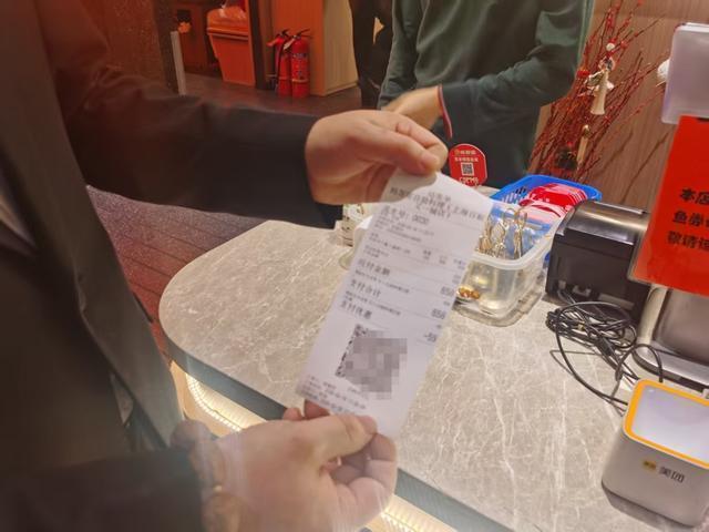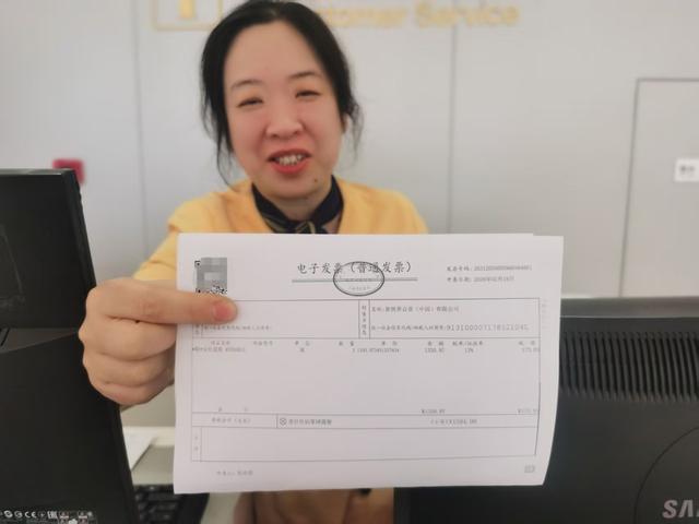 巴黎春天杨浦店的收银员出示发票。