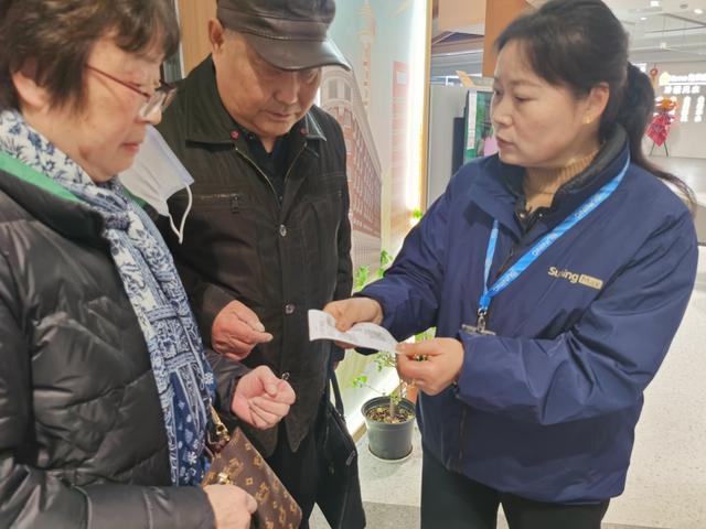苏宁易购营业员向顾客介绍如何开具电子发票参与抽奖。