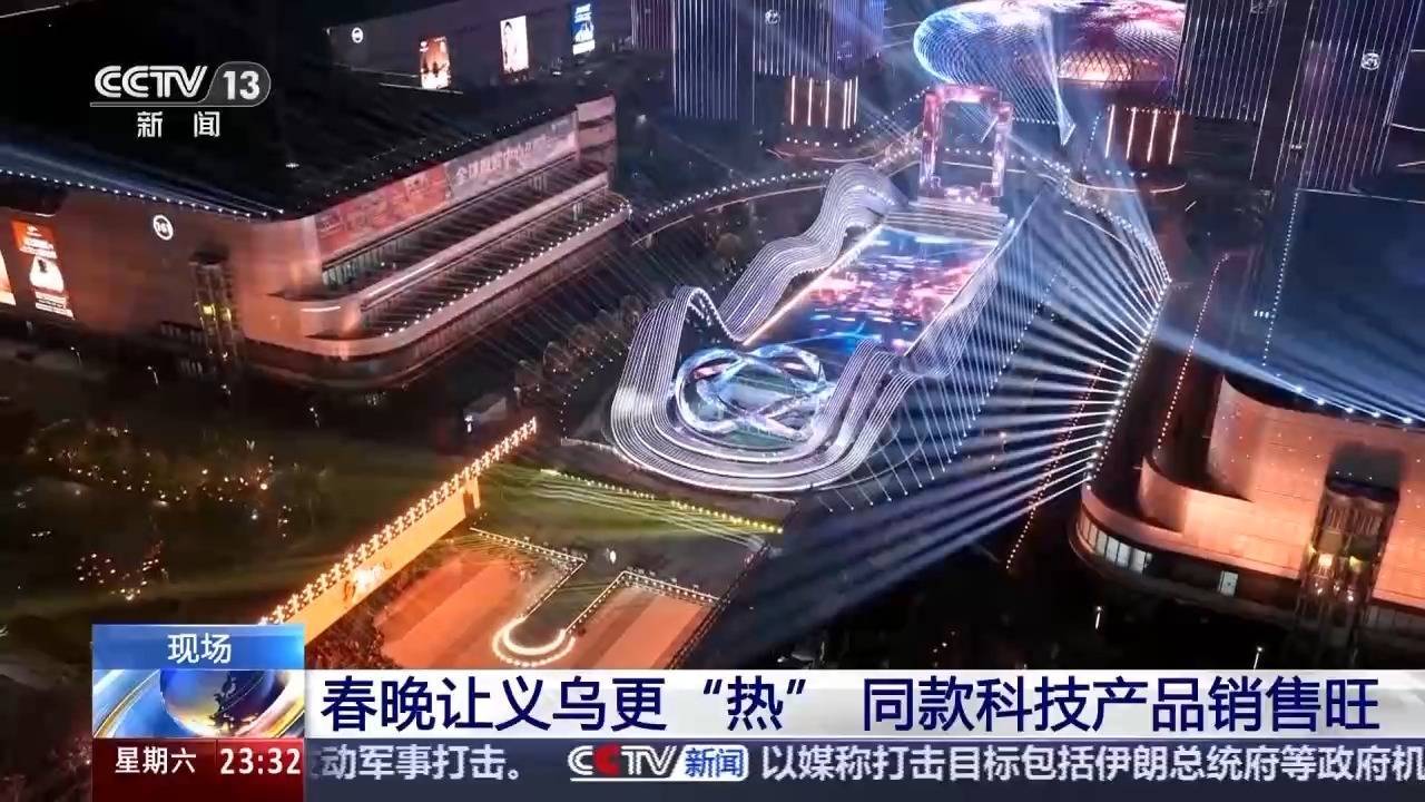 r春晚义乌分会场主舞台的背景是一扇中式的窗户,它代表着中国看世界,世界看中国。28日义乌小商品市场全面开市,入夜之后上演了一场与春晚同款的光影秀。