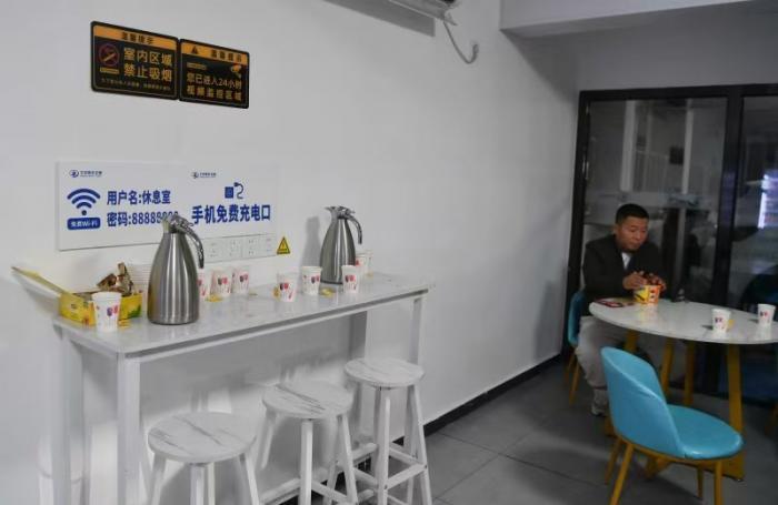 超级充电站内的休息室。