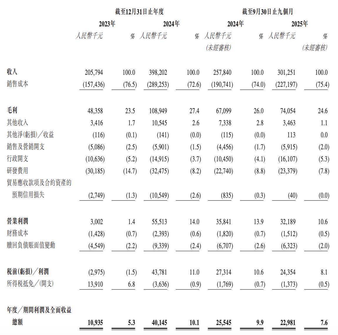 业绩方面,公司于2023年、2024年、2025年截至9月30日止九个月,收入分别约为2.06亿元、3.98亿元、3.01亿元。
