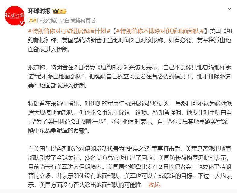梁由之,公众号:环球时报 特朗普:“不排除派地面部队”